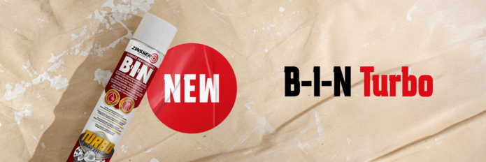 And that is not all. Clean-up is just as quick. There is no need to rinse out paint trays, brushes or rollers — simply cleaning the valve is enough. To do this, turn the can upside down and press the spray nozzle for a few seconds until no more paint comes out. In short, B-I-N Turbo saves you time, a lot of time.
