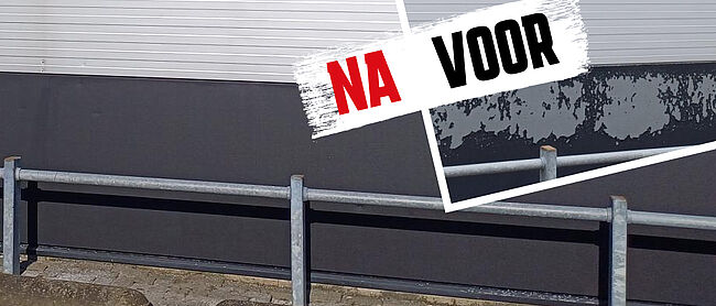 Barstende muurverf op betonnen geveldeel duurzaam hersteld met Allcoat Exterior